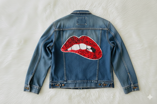 XL Lippen Pailletten Aufnäher – Funkelnder Kussmund Patch in Weiß & Rot – Große Applikation für Jeansjacken, Taschen & DIY – 28 x 15 cm