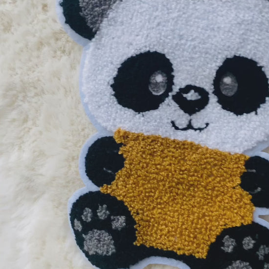 Punch Needle Aufnäher Panda – Hochwertiger Tufting Patch für Schultüten, Hoodies & DIY – Flauschige Applikation – 20 x 13 cm